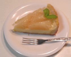 【4】リンゴは小ソースパンで無水でゆで、(好みで砂糖を加える)冷ます。できあがったタルトにきれいに並べてゼリーを流し込み冷蔵庫で冷やす。