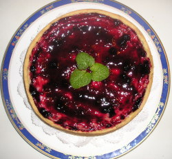 【3】小ソースパンに、ブルーべりージャム・ブランデーを入れ、煮てアルコール分を飛ばし冷めた【2】の上に塗る。 |