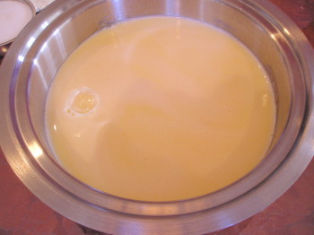 粉をさっくり混ぜて【2】のプリン液の中に一気に流し込む。