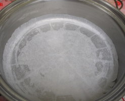【2】中フライパンにクッキングシートを敷き側面にバターを塗っておく。