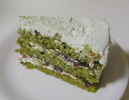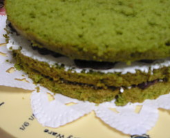 【7】最後に生クリームをのばし抹茶の粉を振る。