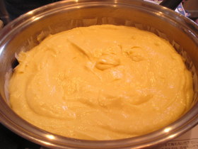 さらにオレンジキュラソー…20ccオレンジの皮を加え軽く混ぜ【1】に入れケーキモードで焼く。