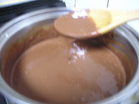【2】鍋に生クリームを入れ沸騰前に火を止める。細かく切ったチョコレートを入れて溶かす。
