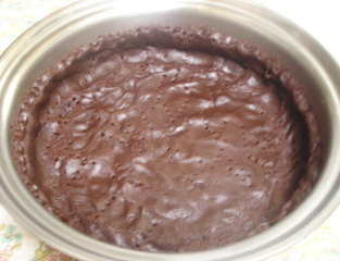 【4】【1】のタルト生地の上に【3】を流し入れフタをして電磁調理器のタルトモードか、ケーキモード、あるいは、プレート170℃で30分焼く。