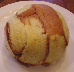 【4】出来上がったら側面にナイフを入れ、網にひっくり返して冷まし、写真1のように切って2のように敷き詰めておく