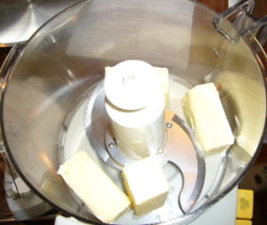 【3】FP(メタルブレード)に室温に戻したバターを入れクリーム状に練る