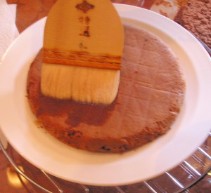 【4】チョコレートクリームを塗り固まったらココアをふる。 |
