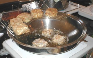 溶き卵をくぐらせAを回りにつけて揚げる。 |