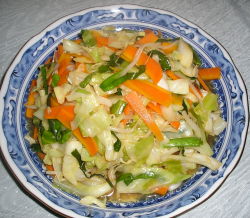 4〜5cmの長さで、千切り。中フライパンで加熱、酢・ごま油・しょう油で味付けする。 |