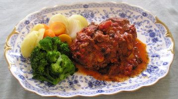■ひき肉のパスタソース煮・トマトツナ詰め煮・温野菜の付け合わせ・紅茶ケーキ■
