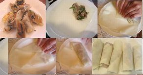 【1】ささみにAを加え、混ぜさらに、春雨、椎茸、ニラと混ぜ春巻きの皮でぴっちり包む。