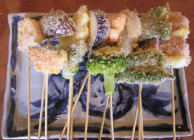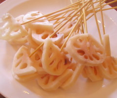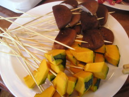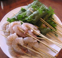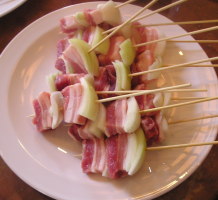 【1】材料を適当な大きさに切って串に刺しておく。