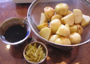 【1】新じゃがは薄皮を取る。Aは混ぜ合わせておく。