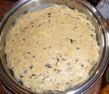 【5】A)を混ぜ合わせ【4】に一気に加え10回パルス(1回10秒)(混ぜすぎない)さらに【2】のプラムを入れ4,5回パルス(1秒を4,5回)