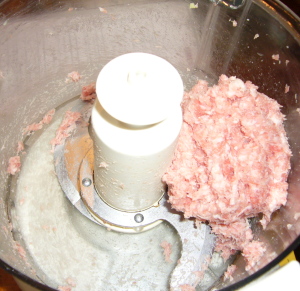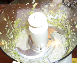 【1】FP(ドゥブレード)でA)をよく練り4等分する。