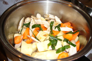 じゃがいも…4こ(一口大に切る) にんじん…1本(乱切り)