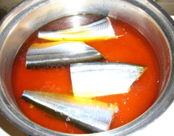 サンマ…2尾(頭と尾を取り内臓もきれいにはずして洗い半分に切る。)