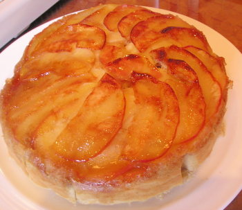 【2】中フライパンにクッキングシートを敷きプレート170度でバターとグラニュー糖を入れ焦がしキャラメル状にしてから、くし切りのリンゴを並べ入れる。