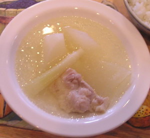 【3】次に大ソースパンに【1】【2】と塩コショウ、白ネギ、生姜、を入れやや強火沸いてきたら、中弱火にして25分。 |