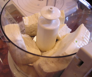【2】フードプロセッサーで豆腐を入れしっかり回す。さらに【1】と調味料をすべて加えて回す。