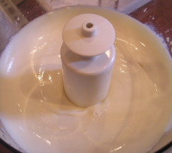 【1】FPで卵砂糖を入れ10分くらい泡立てる。