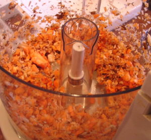【3】【1】がもったりしてきたら粉を入れパルスで10回混ぜて残りのリンゴとオイル、牛乳を加えて軽く混ぜる。