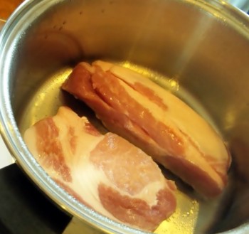 豚ロースかたまり…400〜500g(たこ糸でしばるA:にんにく…2かけ