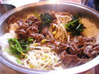 【4】ウオックにごま油を塗りご飯を敷きへらで押しつけるように焼く。