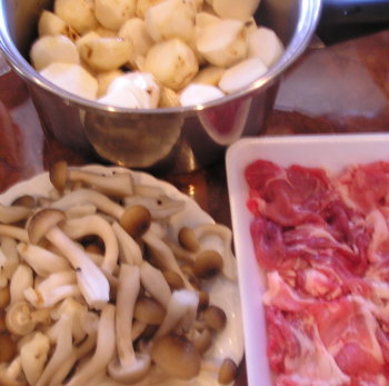 【1】鍋に肉を一番下にほぐして入れる。他の材料t、Aを入れふたをして中火にかけ、ふたがカタカタしたら弱火にして里芋が柔らかくなったら火を止める。