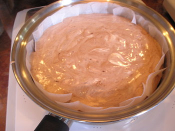 【1】スポンジを焼く。できあがれば冷ましてスポンジを2枚に切っておく