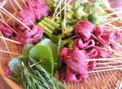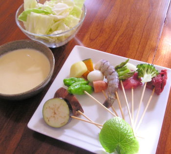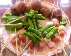 【1】材料を適当な大きさに切って串に刺しておく。