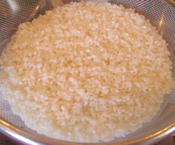 【1】米は水洗いし、約15分水に浸して水気を切っておく。