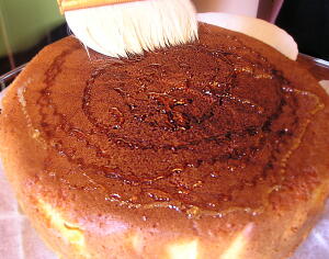 【4】IRケーキモードで焼き、焼き上がったら仕上げに蜂蜜をたっぷり塗る。 |