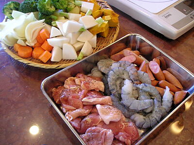 【3】クイーンウォックに セットし回に具をおきにんじんとか、じゃがいもなどさきに入れるブロッコリーはあとから入れると良い