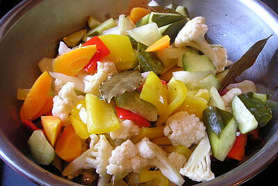 【4】作り方 野菜の上下を返し、フタをしてそのまま冷やす。