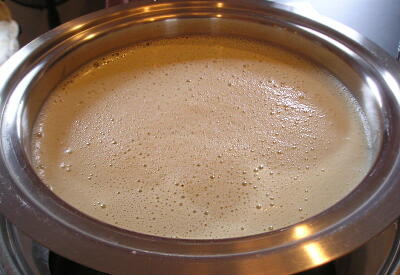 【4】シチューパンに水を入れ沸騰したら塩もみした枝豆を入れ、