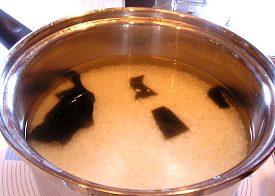 【3】 万能カップにわかめを入れ、2を静かに入れる。