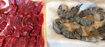 【1】海老は下処理をして牛肉は塩こしょうして