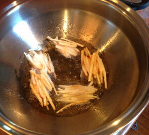 【1】じゃがいもは皮をむき千切りにし、水にさらしあくを取る