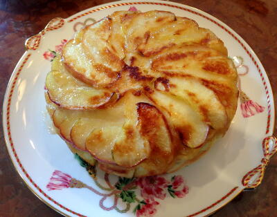 【2】中フライパンにクッキングシートを敷きプレート170度でバターとくし切りのリンゴを並べ入れる。