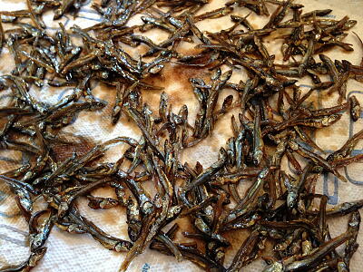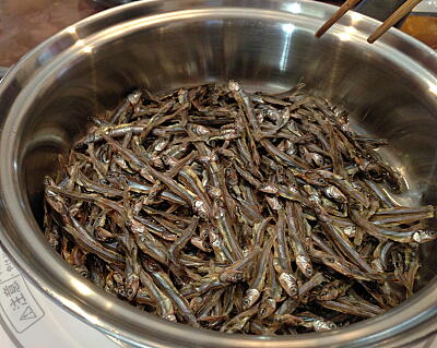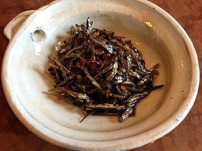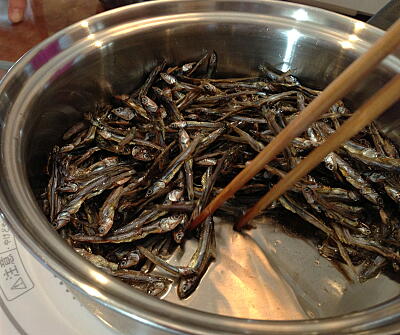 【1】ごまめを160〜170℃でエサンテオイルで揚げる。
