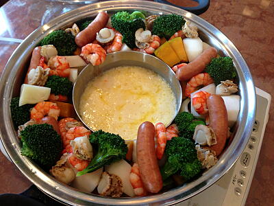 【3】クイーンウォックに セットし回に具をおきにんじんとか、じゃがいもなどさきに入れるブロッコリーはあとから入れると良い