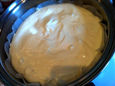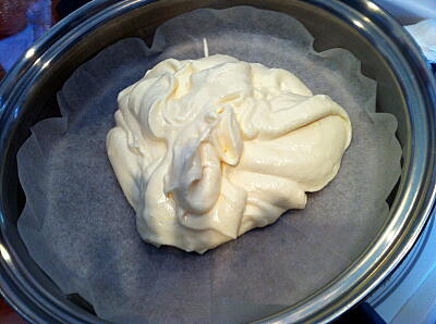【4】大フライパンにシートを敷き生地を流し込み、IR(プレート)170°で15分焼く