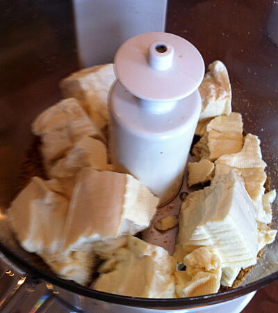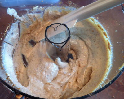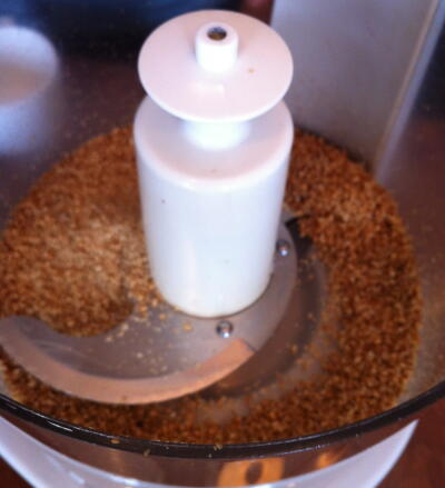 【3】FP(メタル)でごまを粉砕し、さらに豆腐、味噌、砂糖、エサンテをまわしいれ、続けて回す。