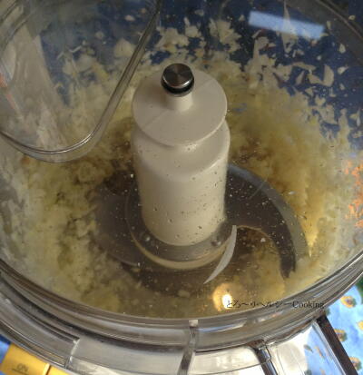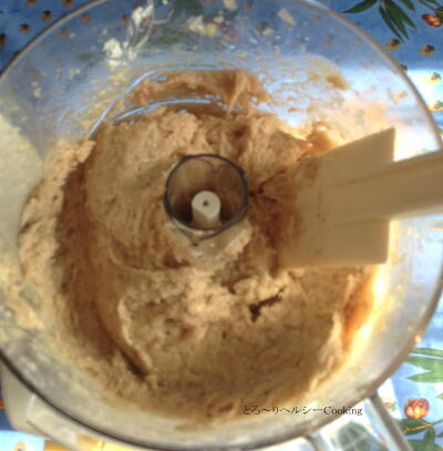 【2】FPで卵3個と砂糖を加え泡立てる。(5分くらい)油を混ぜ、さらに粉