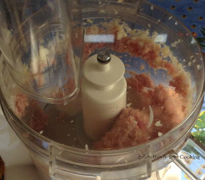 【2】豚ミンチあんの→から←までのすべての材料を入れてこねる。