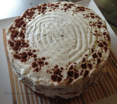 をさっくり混ぜる【1】に流し込むみ焼く。冷めてからスポンジを3枚にスライスする。
