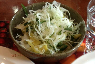 【1】たくわん・キャベツ・大葉などすべて千切りごまをあえてポン酢などでいただく。 |
