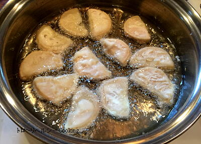 スプーンですくって油で揚げる