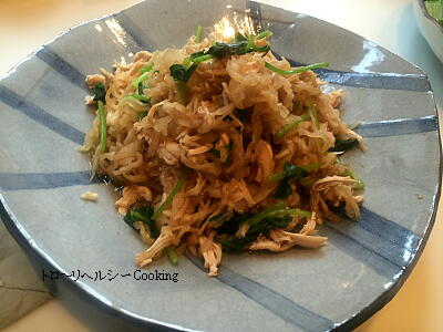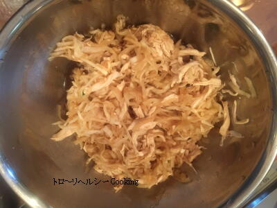 【4】合わせ酢で和える。(ささみの汁もまぜる。) |